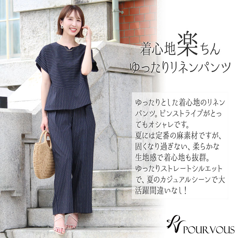 【楽天BOX受取対象商品(レディースファッション)】【コンビニ受取対応商品】商品名【商品番】 ピンストライプリネンパンツ【312201663】 ♪