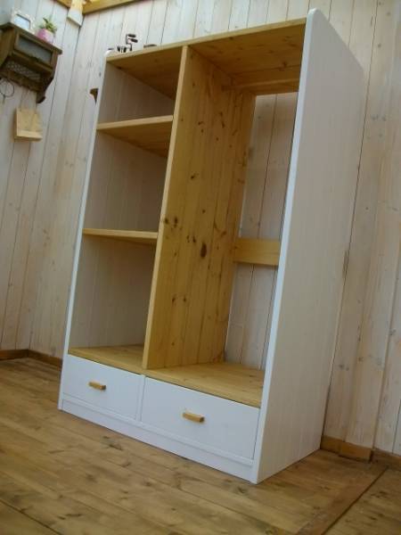 *サイズ (約)・幅 800mm・高さ 1300mm・奥行き 450mm ・ハンガー棚の内寸 幅400mm バーから底板まで約96cm(外寸高さ140mm引出1杯)・左側三段棚の高さの内寸 上段229mm 中段350mm 下段400mm(外寸高さ140mm引出1杯)※カラー ワトコオイル&ホワイト(2トーン)材質 ・パイン無垢材お願い *若干の誤差はお許しください。