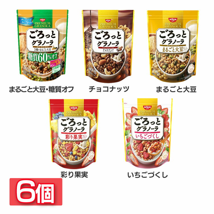 【6個】ごろっとグラノーラ シリアル グラノーラ ごろっとグラノーラ 栄養 大豆 糖質オフ 朝食 ザクザク ごろっと 日清シスコ まるごと大豆・糖質オフ チョコナッツ まるごと大豆 彩り果実 いちごづくし【D】