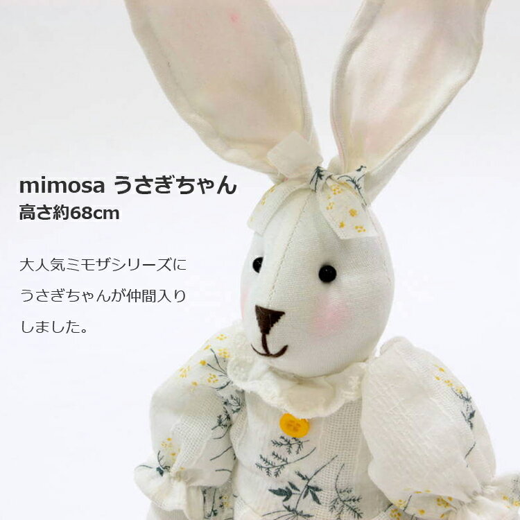 うさぎちゃん 高さ約68cm ぬいぐるみ マスコット ナチュラル ミモザ柄 ワンピース リボン 可愛い 人気 ギフト リビング 子ども部屋 プレゼント